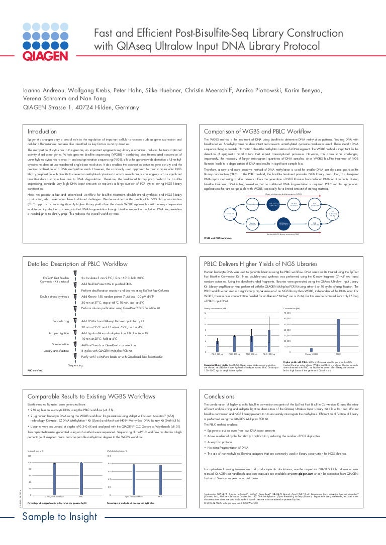 Brandon Mistretta University of Houstons Department of Biology and Biochemistry. Fast and Efficient Post-Bisulfite-Seq Library Construction with QIAseq Ultralow Input DNA Library Protocol 1. The QIAseq library is constructed with a unique molecular index which is sequenced during Read 1 and which enables more accurate quantification of miRNA expression levels.